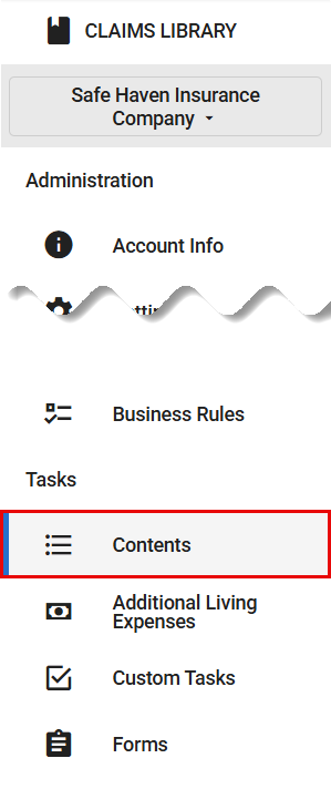 - In the administrator view of ClaimXperience, select Contents from your side navigation menu.