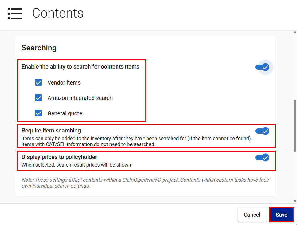 - To require users to search for items within ClaimXperience, switch on the Require item searching toggle.