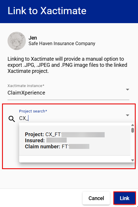 - Select Link to Xactimate. This opens the Link to Xactimate drawer.