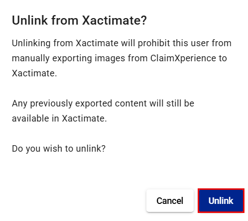 - Select Unlink in the Unlink from Xactimate? confirmation dialog.