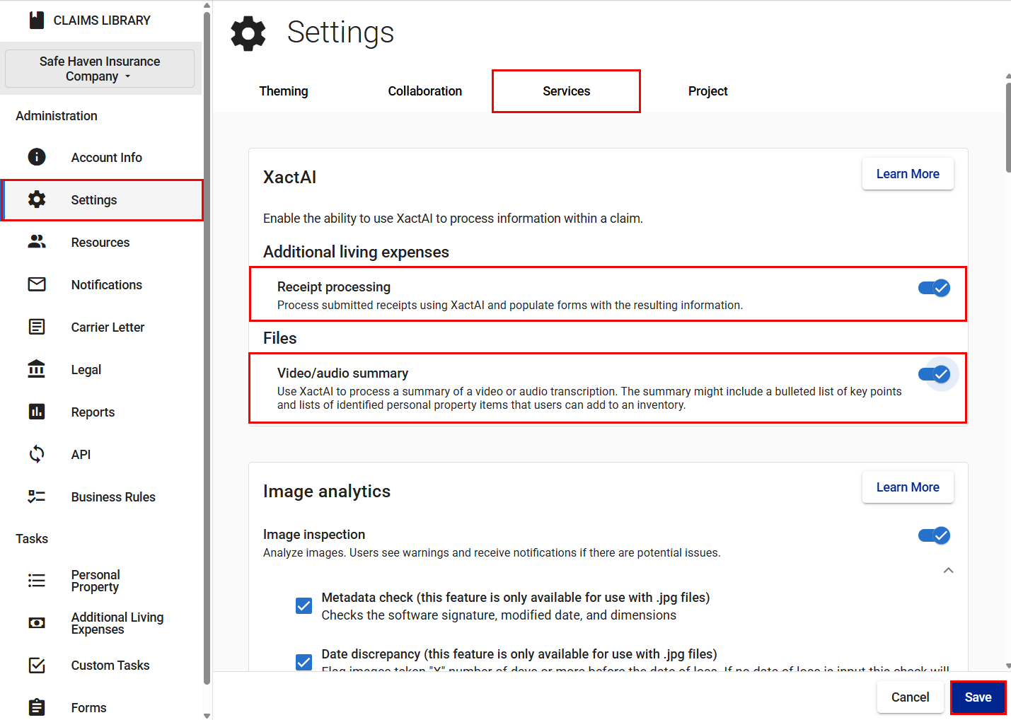 - From within the administrator view of ClaimXperience, select Settings from your side navigation menu.