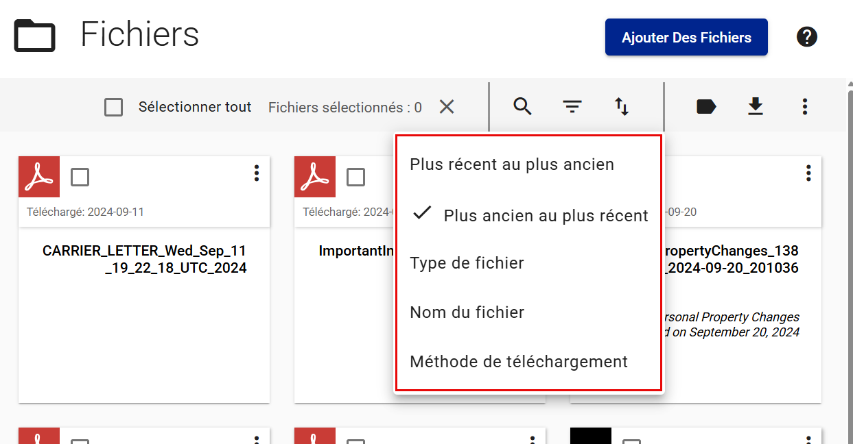 Titulaire de police : Rechercher, filtrer et trier des fichiers