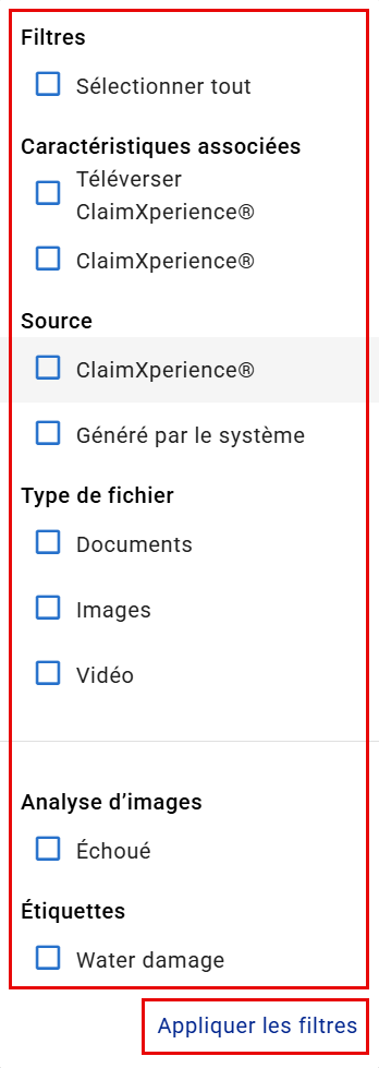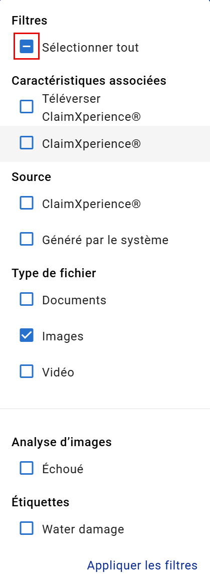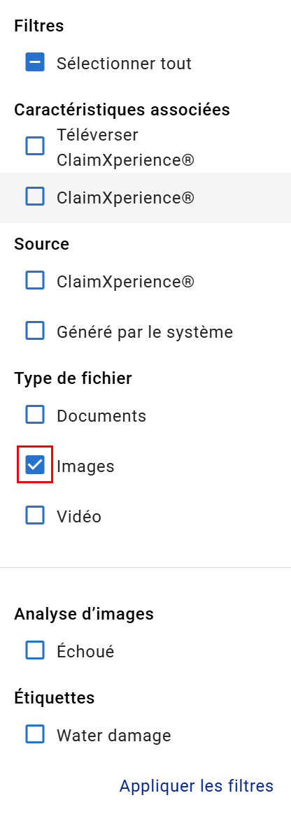 - Sélectionnez les filtres que vous souhaitez utiliser.
