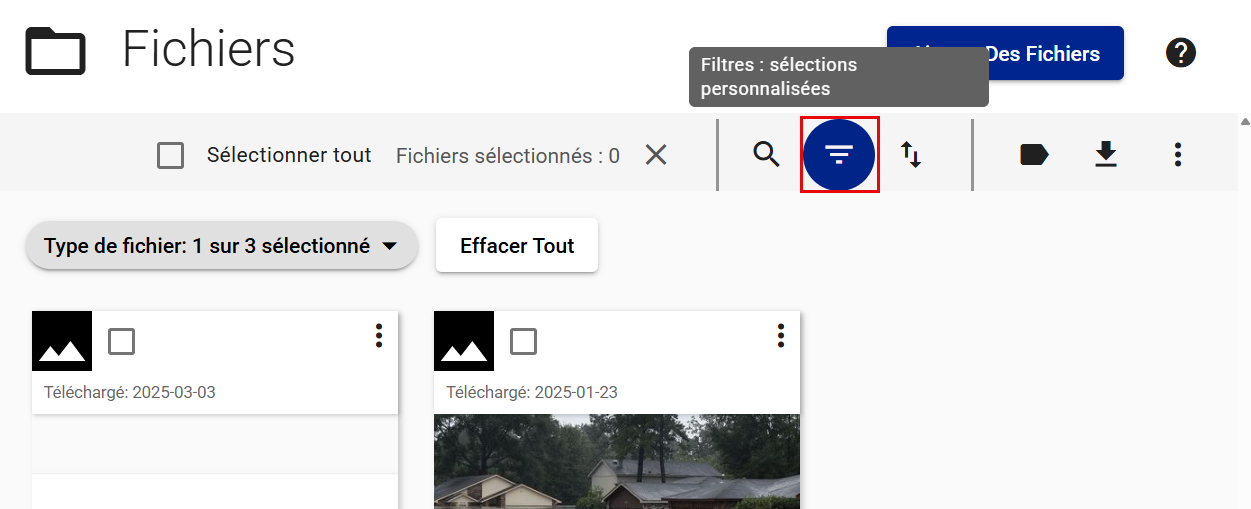 - Sélectionnez l’icône Filtres : sélections personnalisées.
