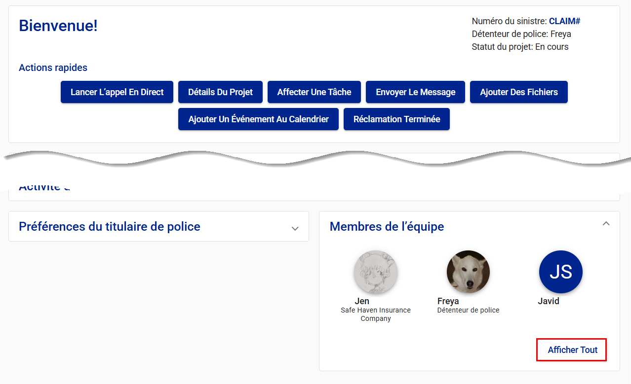 ou Afficher tout dans la fiche des Membres de l’équipe sur votre tableau de bord.