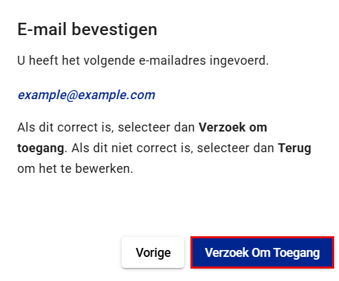 - Als u het verkeerde e-mailadres hebt ingevoerd, selecteert u Vorige om terug te keren naar het vorige venster om het te bewerken; anders selecteert u Verzoek Om Toegang. U krijgt een melding wanneer u toegang krijgt.