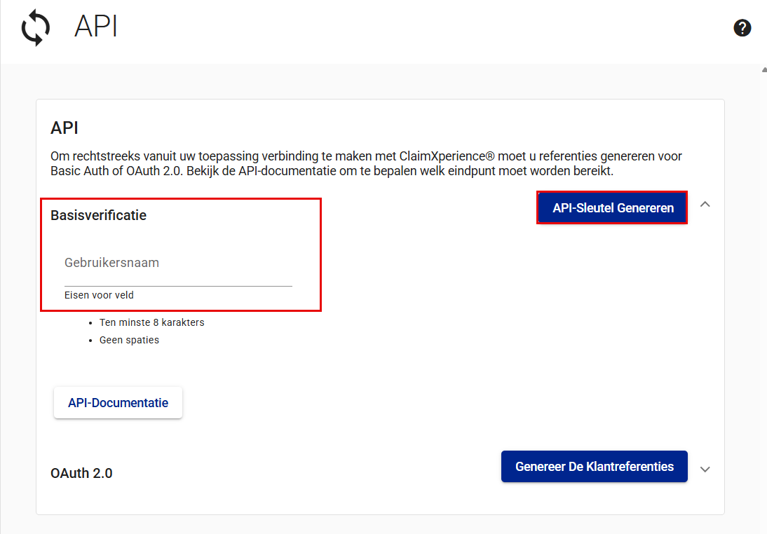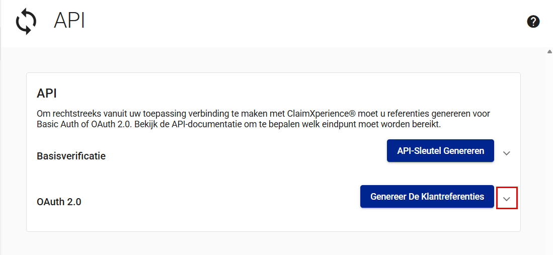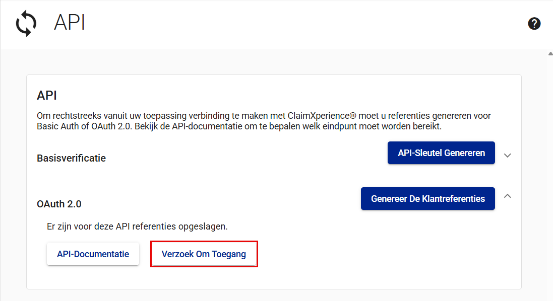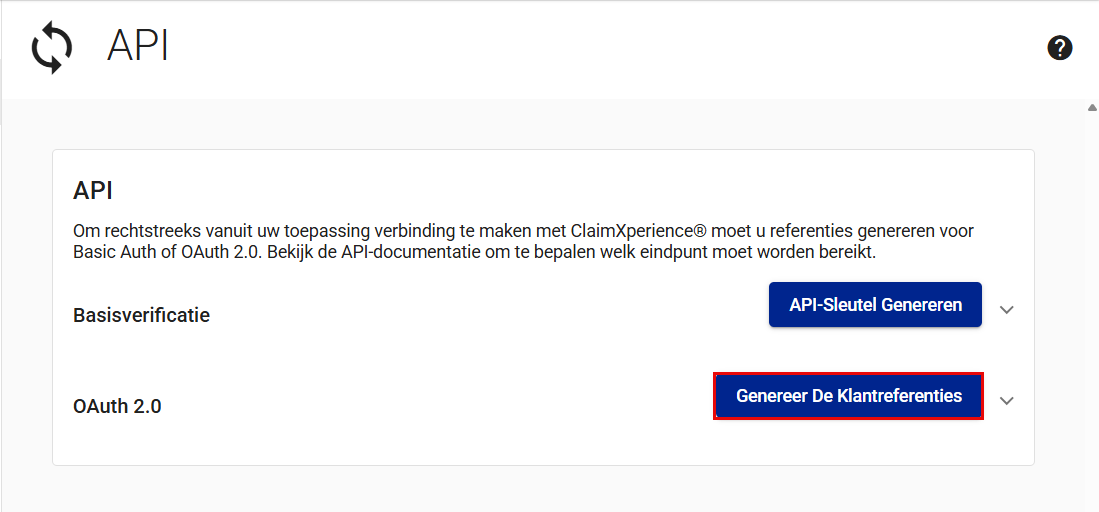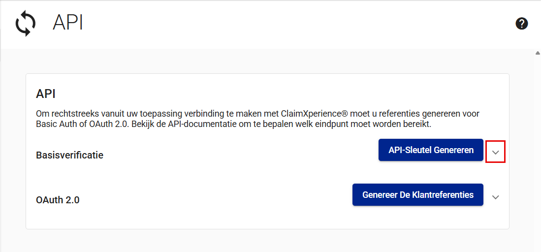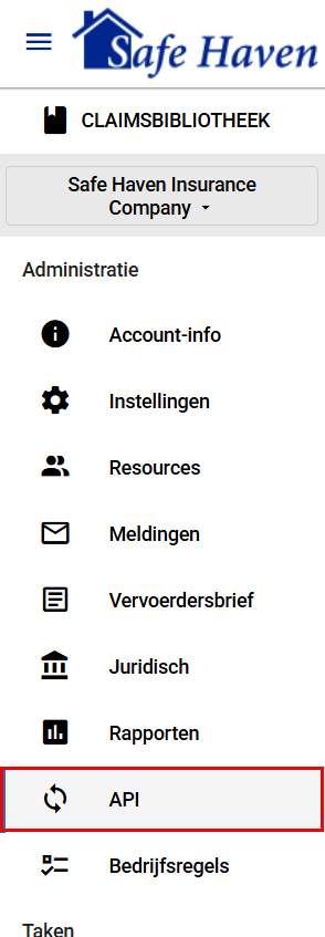 - In de beheerweergave van ClaimXperience selecteert u API in het navigatiemenu aan de zijkant.