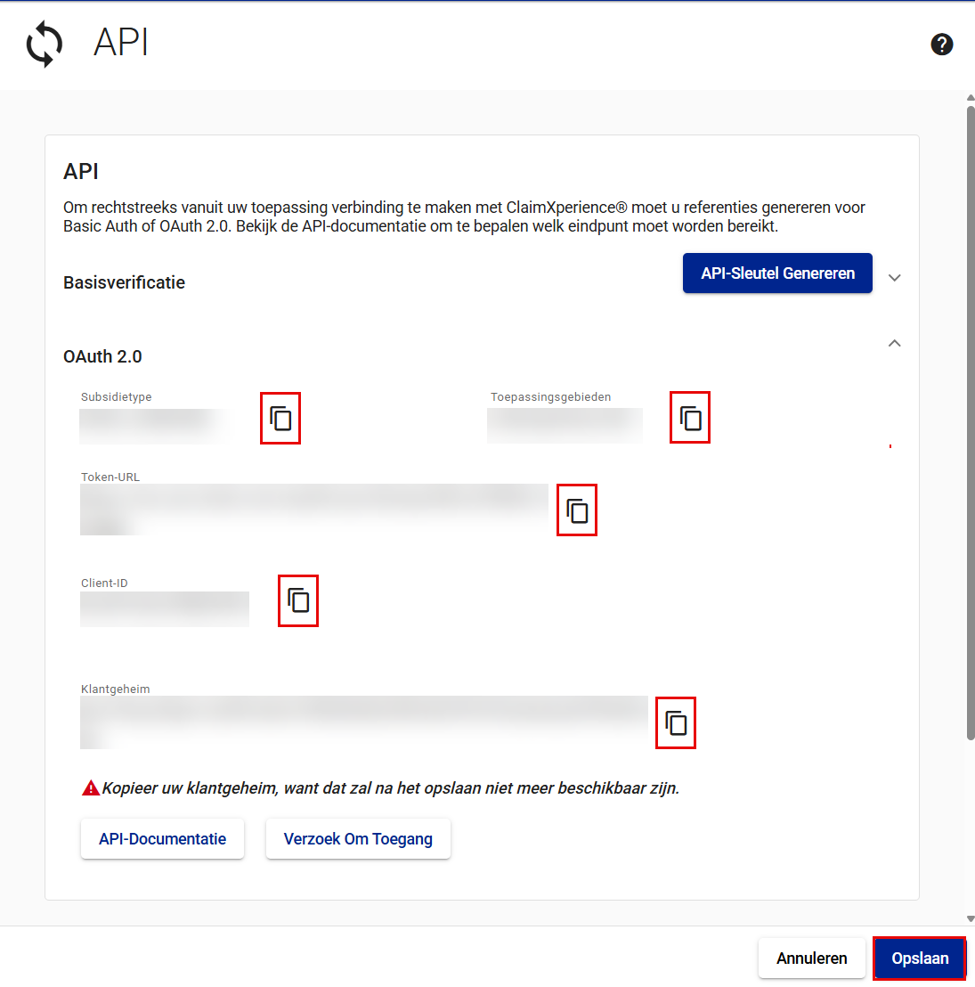 - Klantgeheim. Dit kan niet worden opgehaald nadat u het hebt opgeslagen en de API-pagina hebt verlaten.