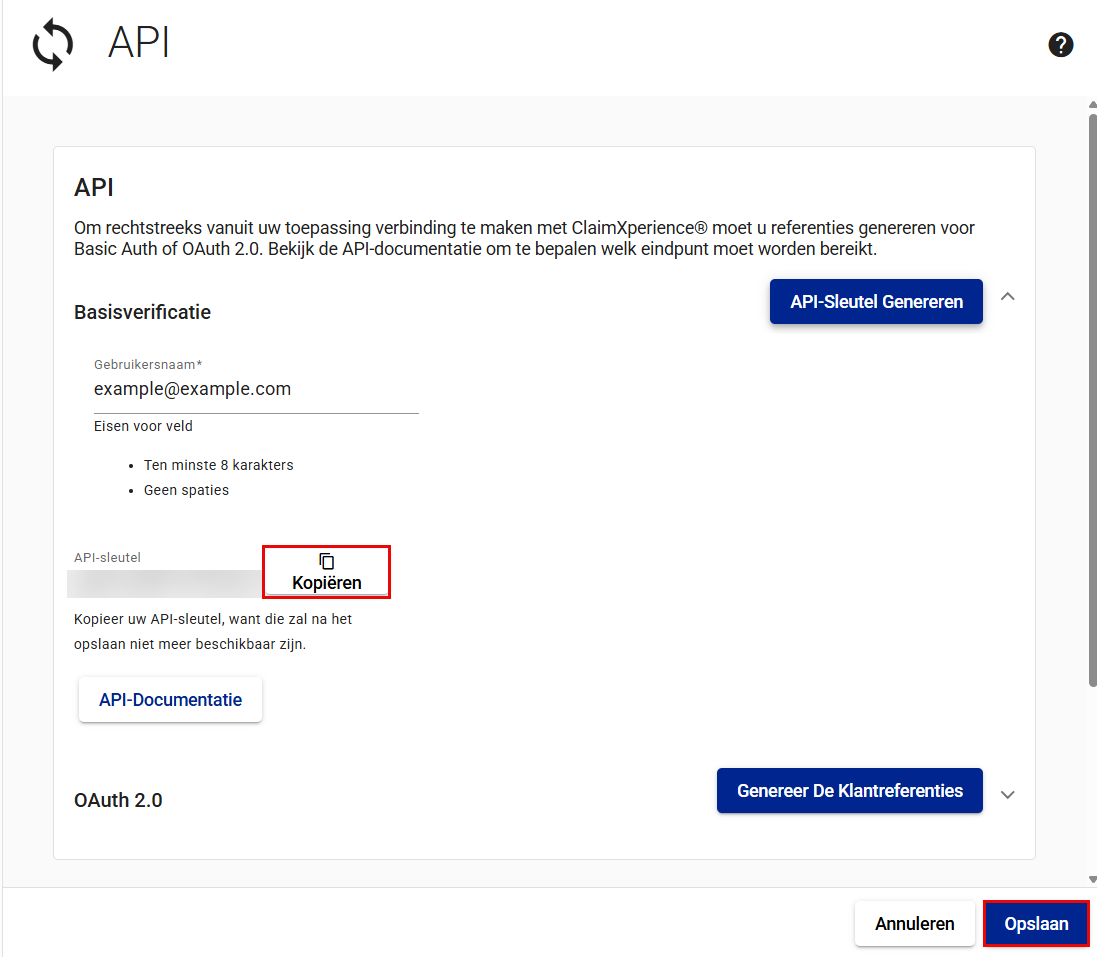 Beheerder: API-sleutels en inloggegevens voor klanten genereren